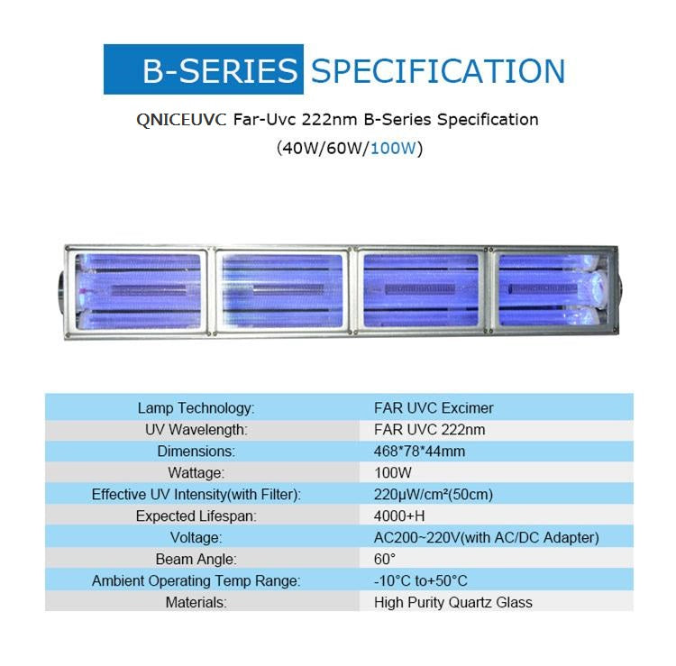 An innovation of FAR-UVC, QNICE 222nm B-Series Module kit is a combination of Excimer lamps, optical band-pass Filter,