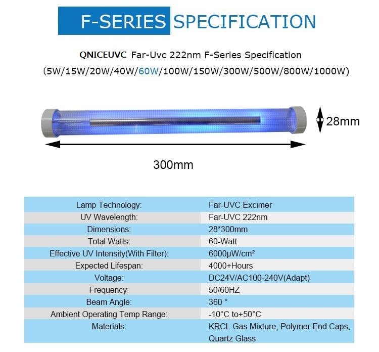 QNICEUVC 222nm FAR-UVC F-Series Excimer Lamps