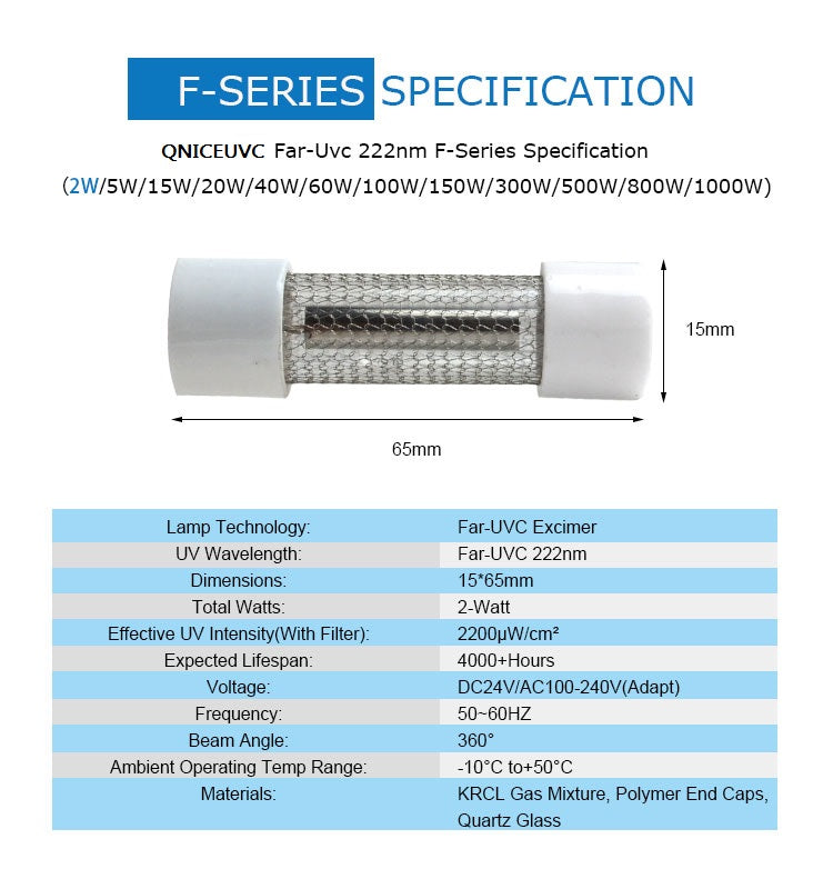 QNICEUVC 222nm FAR-UVC F-Series Excimer Lamps