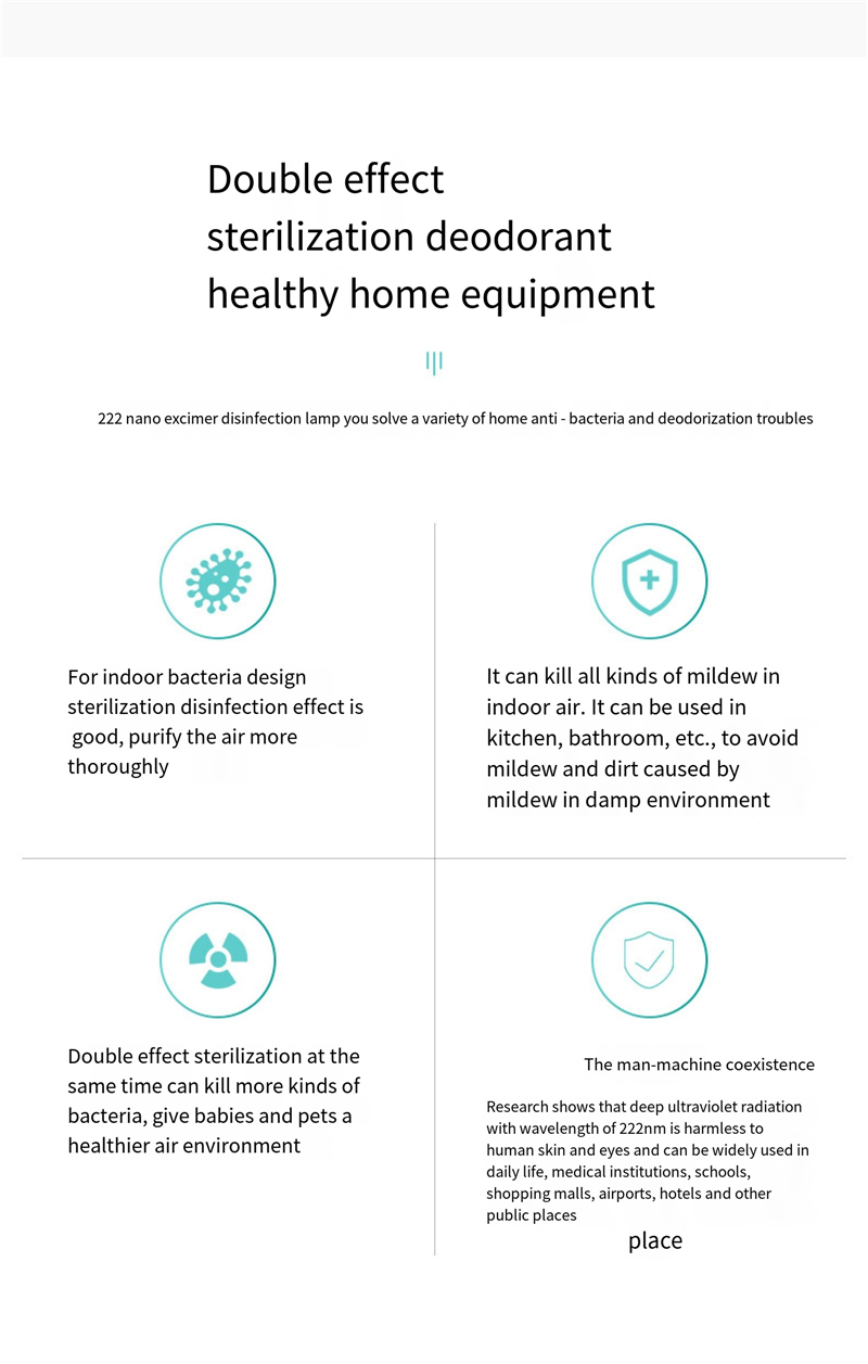 The innovation of FAR-UVC, QNICEUVC 222nm F series excimer lamp is a mercury-free lamp, which can disinfect 99% of viruses, bacteria,